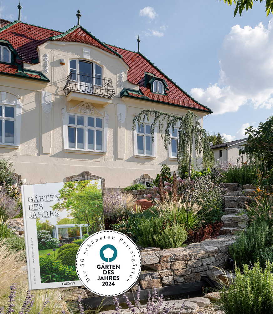 Die BEGRÜNDER wurden 2024 erneut für ihre herausragende Gartengestaltung ausgezeichnet! Ein von Projektleiter Peter Baumgarten gestalteter Villengarten in Klosterneuburg wurde in das renommierte Jahrbuch der 50 schönsten Privatgärten im deutschsprachigen Raum aufgenommen. Der Wettbewerb „Gärten des Jahres“ des Callwey Verlags prämiert jedes Jahr außergewöhnliche Gartenprojekte. Die Jury bewertete Konzept, Umsetzung und Pflanzenauswahl.