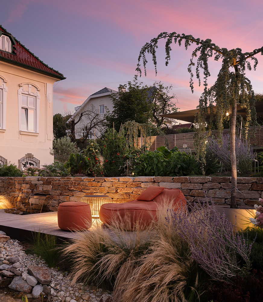 Zum dritten Mal in Folge wurde BEGRÜNDER mit dem begehrten Award der „Top 50 Privatgärten“ ausgezeichnet. Das prämierte Projekt, ein urbanes Kleinod am Stadtrand von Wien, überzeugte die Fachjury durch sein einzigartiges Design auf nur 75 m². Trotz der begrenzten Fläche vereint der Garten eine schattige Esszone, eine hochwertige Outdoor-Küche sowie einen Pool – eine durchdachte Wohlfühloase für die ganze Familie.